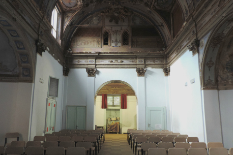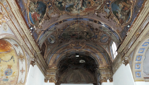 Nel 1741 la decorazione è stata interamente rifatta e le scelte iconografiche rimandano alle figure archetipiche dell’ordine (San Benedetto, Santa Scolastica), alla conversione e ai benefici che l’uomo deve trarre dall’Eucarestia, espressi dalle Virtù.